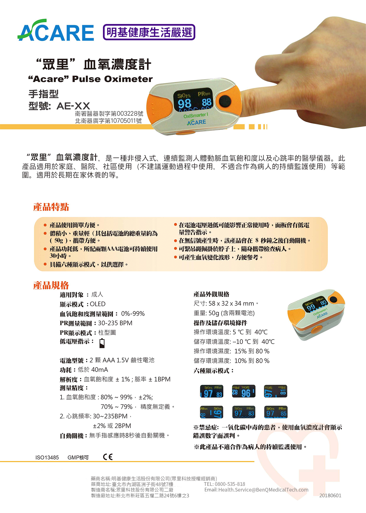 眾里血氧濃度計 Acare Pulse Oximeter_衛署醫器製字第003228號 手指型 型號. 血氧濃度計 現貨 眾里血氧濃度計 ACARE Pulse Oximeter AE-XX血氧機 非侵入式指尖型SPO2 心跳功能.