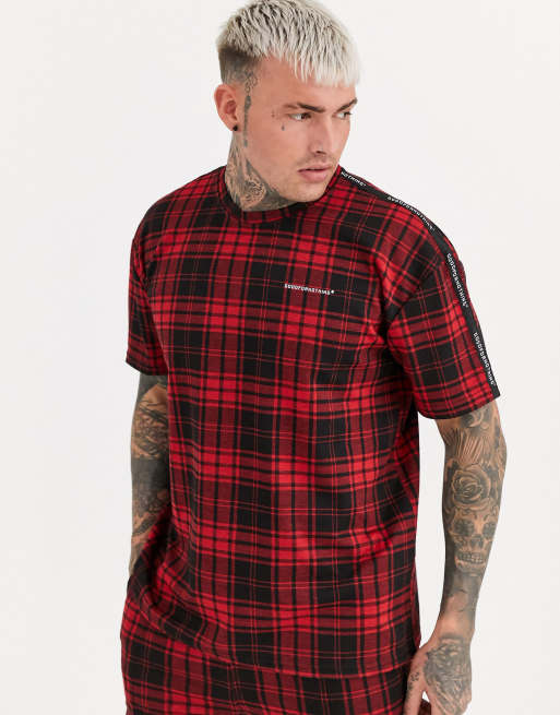 Good For Nothing Two Piece Oversized T Shirt In Red Plaid With Chest Logo Asos