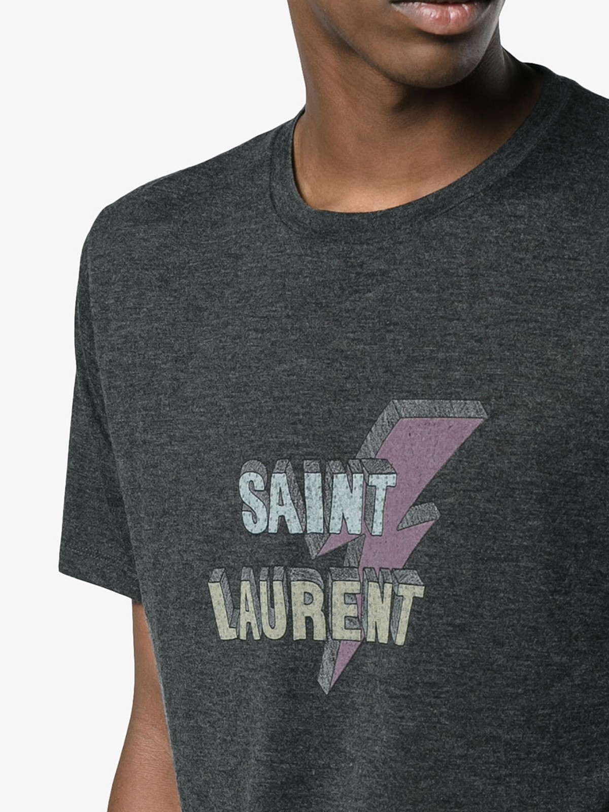 - Grey - Printed Lightning Bolt Motif To The Front - Crewneck - Relaxed fit - Composition. Shop Saint Laurent Lightning-bolt And Logo-print Cropped T-shirt In Black from 500 stores starting at 490. Ad Why Not Treat Yourself To A New Saint Laurent Item.